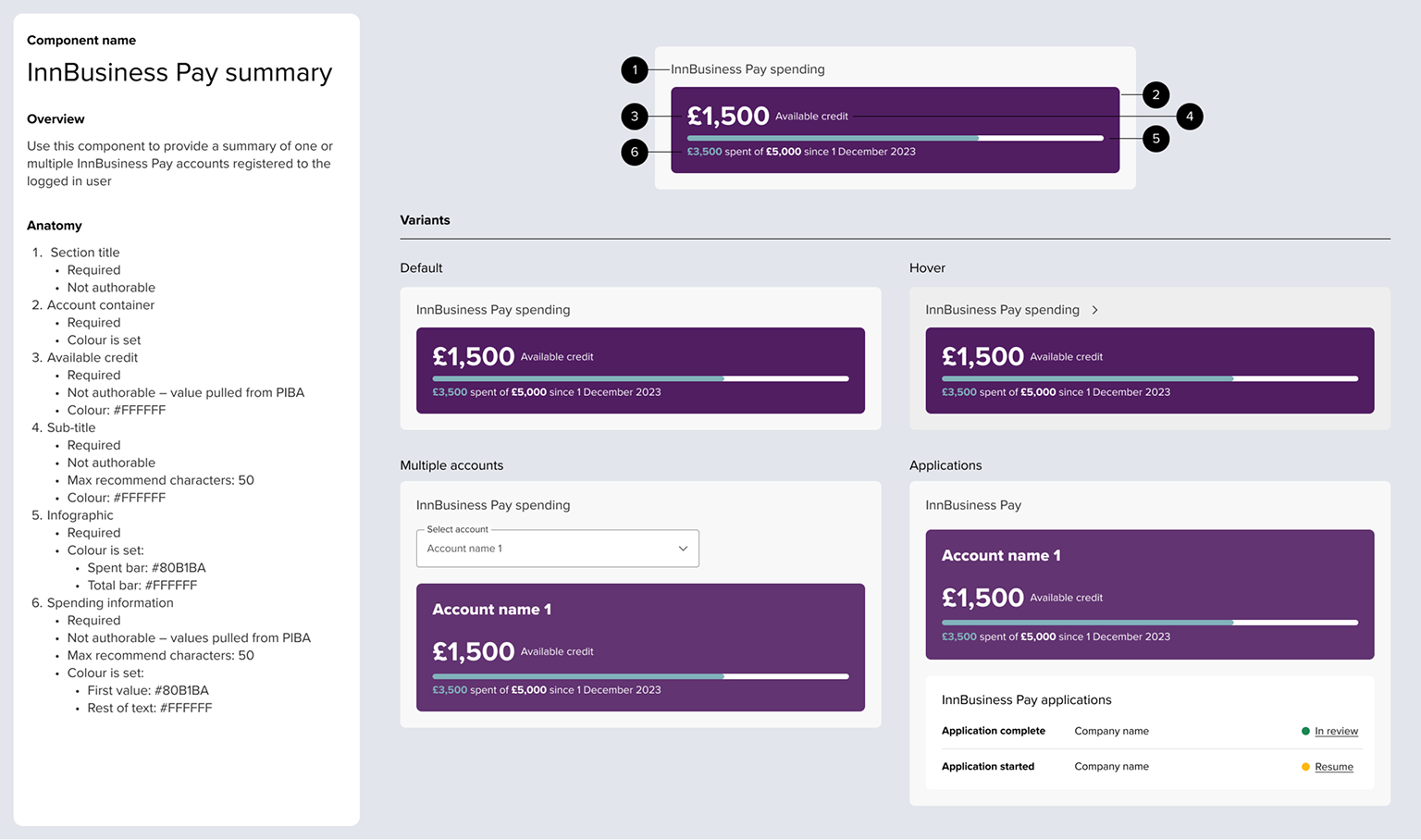 Our finalised designs were based on the existing design system, any additions we created focussed on accommodating financial tools and more detailed management of data that wasn’t required on B2C site. To update the design system to include the new functionality we introduced and documented the new templates and components.