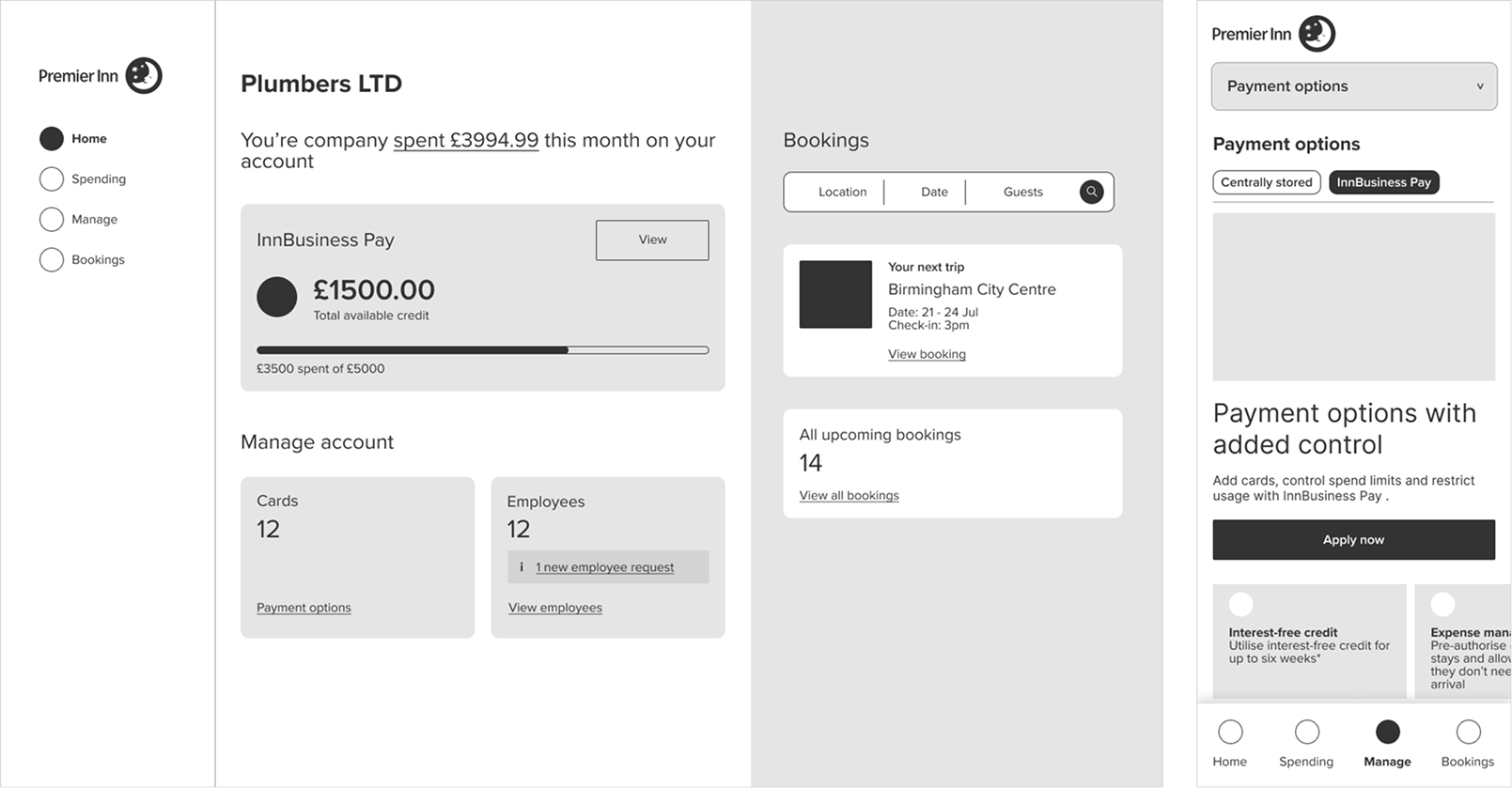 I led the design to combine two outdated products into a new B2B finance and booking customer experience for the UK’s biggest hotel chain.